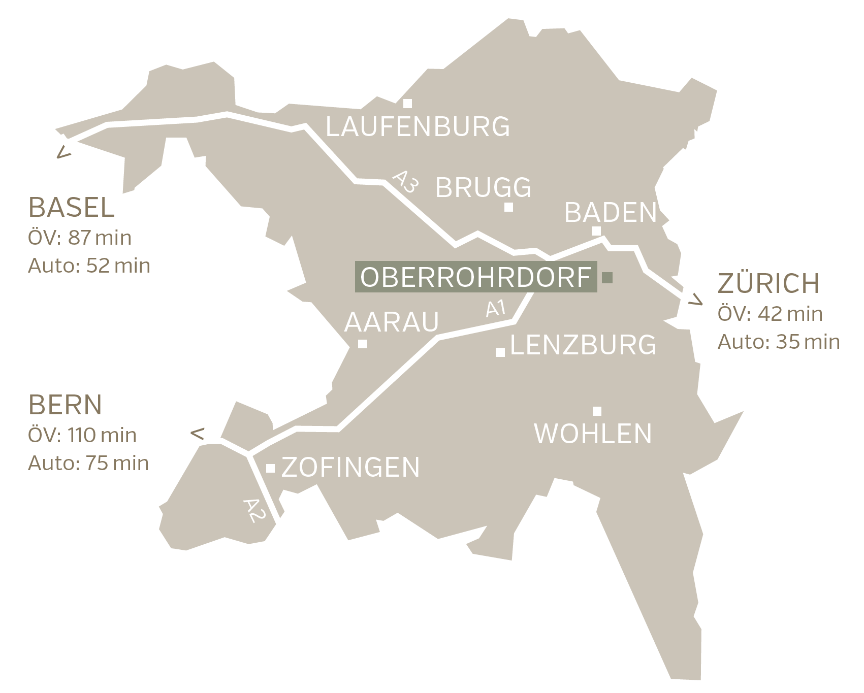 Oberrohrdorf liegt ruhig am Südhang des Heitersbergs zwischen dem Bezirkshauptort Baden und Mutschellen.